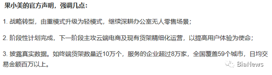 对此,果小美方面否认相关了传言,称公司将进行战略转移,由重模式转向轻模式,并公布相关的业务进展与业务数据。