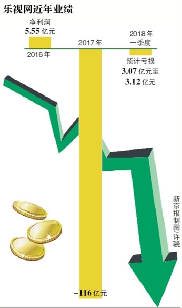 从数据上看,一季度乐视网亏损呈缩减态势。此前披露的2017年度业绩快报显示,乐视网去年营业收入74.63亿元,同比下降66.06%,净亏损116.08亿元。按已公布的2017年前三季度乐视网净亏损16.52亿元计算,2017年第四季度乐视网亏损近百亿元。