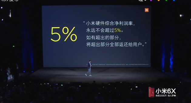 - 4月25日,在武汉大学举行的小米6x发布会上,小米公司董事长雷军发布了一个重要的数字:5%。雷军表示:小米公司董事会已经通过决议,从今天